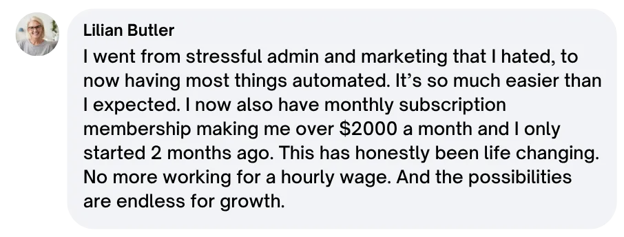 After 6 months of trying to run my business I heard about Caroline through a friend. My friend had already earnt over $20,000 since signing up. In 2 months I have already signed up 6 new coaching clients and I have 45 new people in members area which is 5x what I had before!
